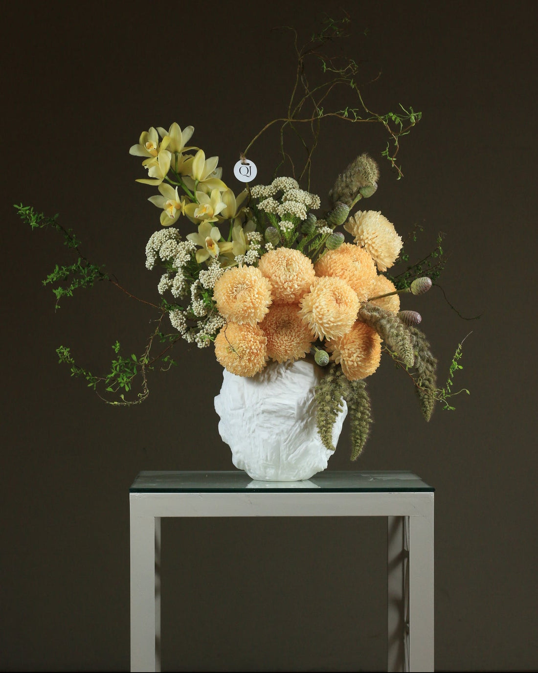 A luxurious arrangement with a distinctive design that evokes a welcoming spirit. The large, round...