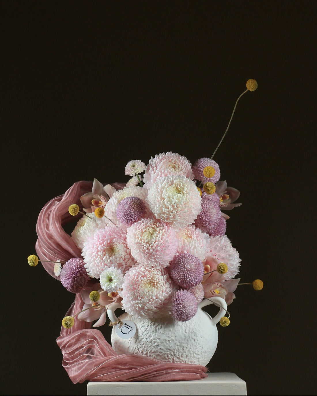 An elegant arrangement that blends delicacy and luxury, with shades of pink and white that...