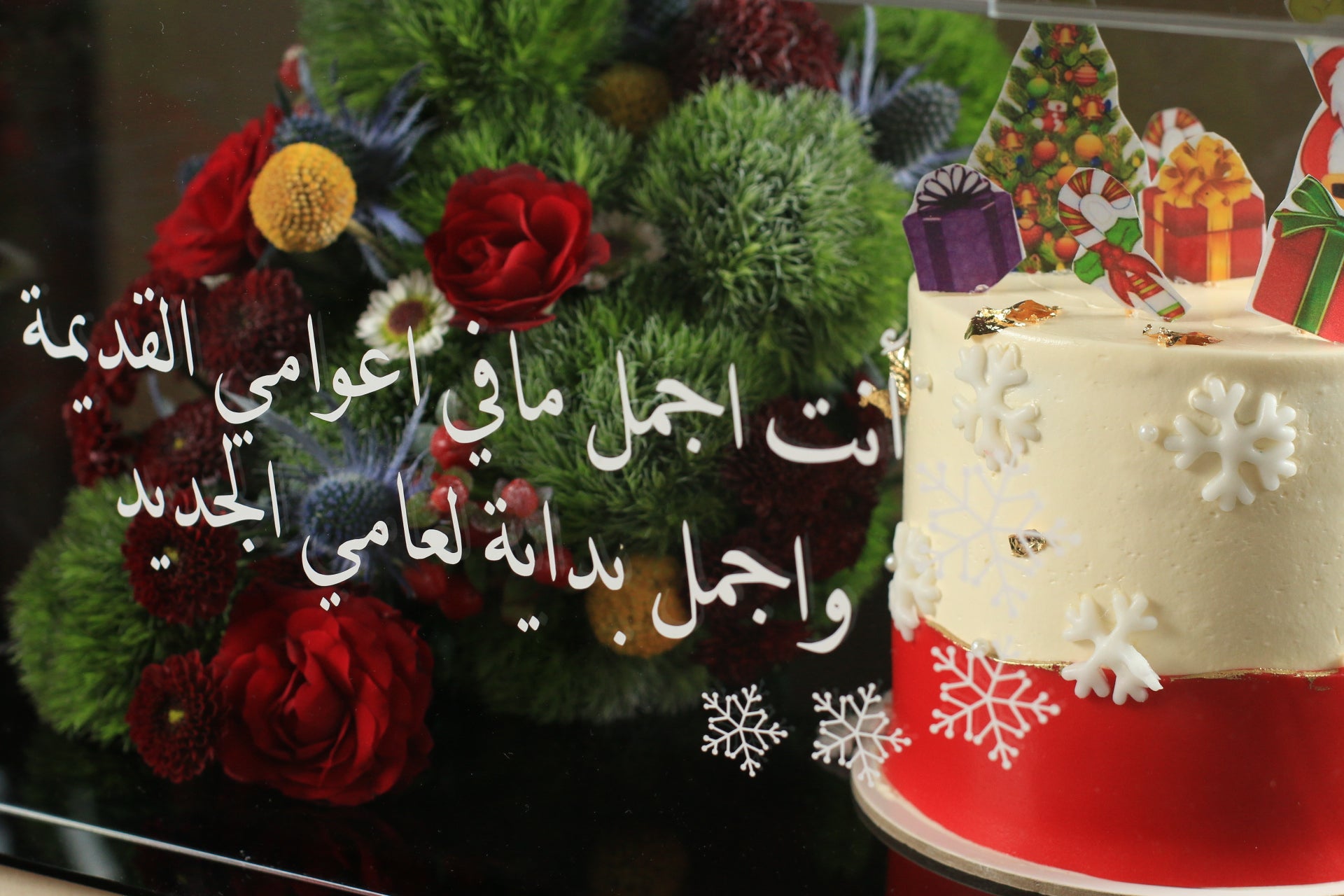 An elegant arrangement combining the beauty of roses and the joy of a New Year's cake, with festive details that reflect the spirit of happiness and transform every moment into an unforgettable memory 🎁🎂✨